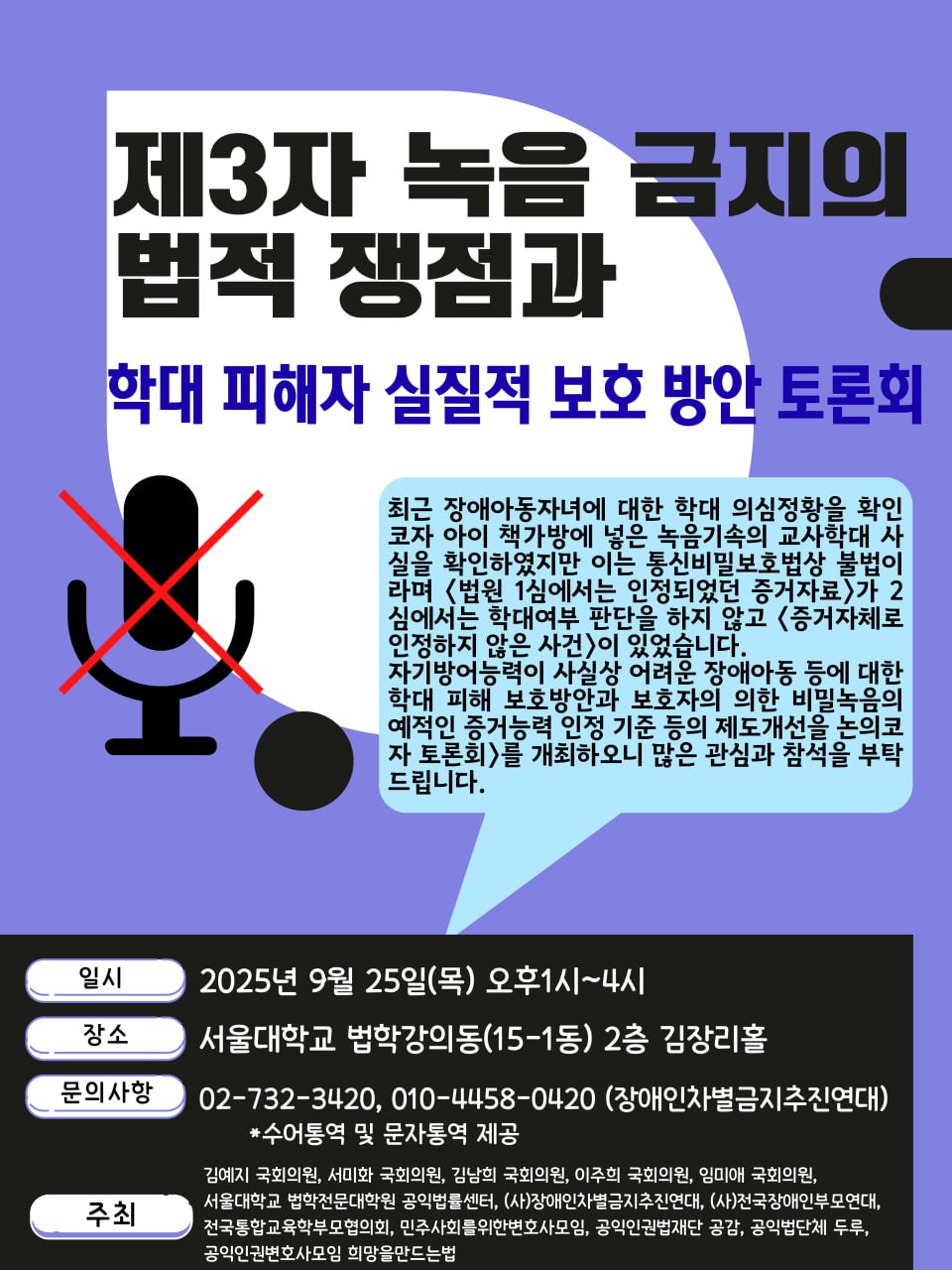 [2025.09.25. / 토론회 자료집] '제3자 녹음 금지의 법적 쟁점과 학대 피해자 실질적 보호 방안 토론회'